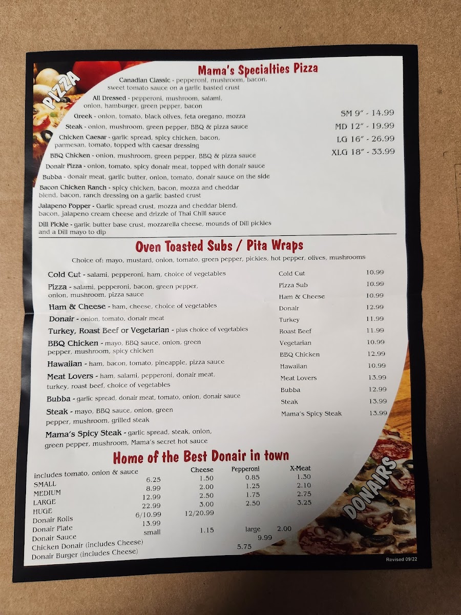 Mama Sofia Pizzeria (KINGSTON) Menu